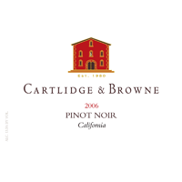 Cartlidge and Browne Pinot Noir - 2006 "Medium-full garnet in color, the wine leaps from the glass with loads of baked chery/berry fruit character, along with anise, spice cake, and the 'beety' notes so appreciated in Pinot Noir. Showing lots of vigor and sweet juicy fruit on the palate, the wine's muscle is matched by a supple texture and velvety tannins that give it great accessibility. Enjoy it with grilled meats and poultry, salmon and light pastas." |