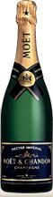 Moet & Chandon Nectar Imperial "Nectar Impérial is a champagne to please the senses. The assemblage is built around the structure of the Pinot Noir : supple and smooth. Nectar Impérial is both a refined and sophisticated wine whose richness turns into sensuality. Quality : Demi-Sec. Assemblage : Chardonnay, Pinot Noir and Pinot Meunier. Color : medium golden yellow. Aroma : dried fruits, barley sugar, ripe wheat. Palate : balanced and supple. Finish on raisins. Food Pairing: With foie gras,