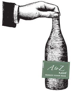A to Z Pinot Noir "Clear and vibrant, this wine has a beautiful dark color and aromas of mixed berries, earth, smoke, violets, Asian spices and minerals. In the mouth, the wine mirrors the aromatics with a succulent texture and good acidity. As the finish unfolds, the individual characteristics of the wine unify and augment one another. Beautifully balanced between richness and power, the wine possesses amazing depth and purity. Classically proportioned while being built with long term potential, the concentrated 2005 A to Z Pinot Noir will be perhaps the longest lived wine we have made." |